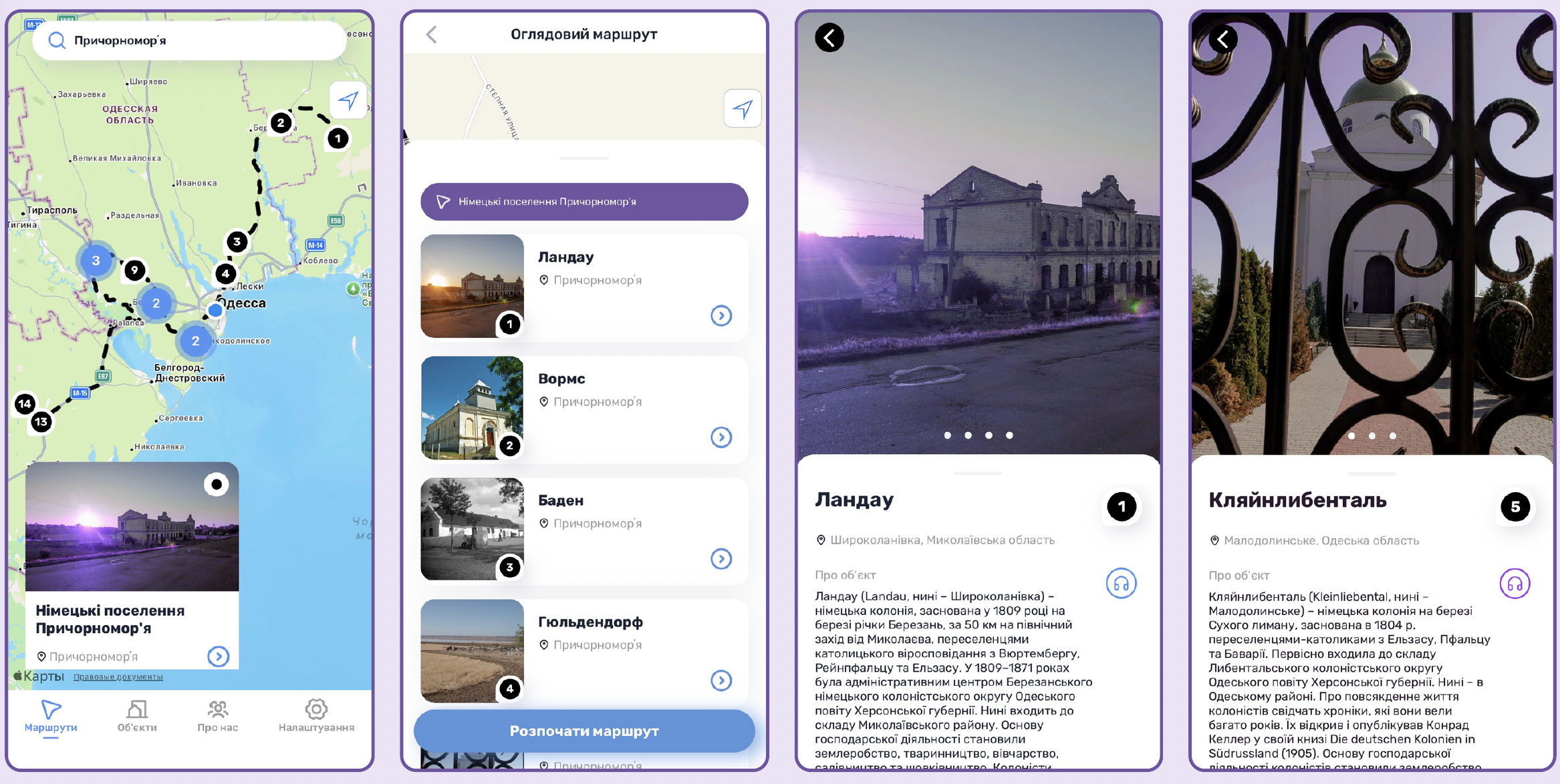 Die neue Route führt durch 14 historische Kolonien in den Regionen Odesa und Mykolajiw – die Gesamtzahl der Siedlungen war jedoch noch viel größer. Sie erfahren hier mehr über die wichtigsten Orte, ihre Gründungsgeschichte und die Entwicklungen im 20. Jahrhundert.